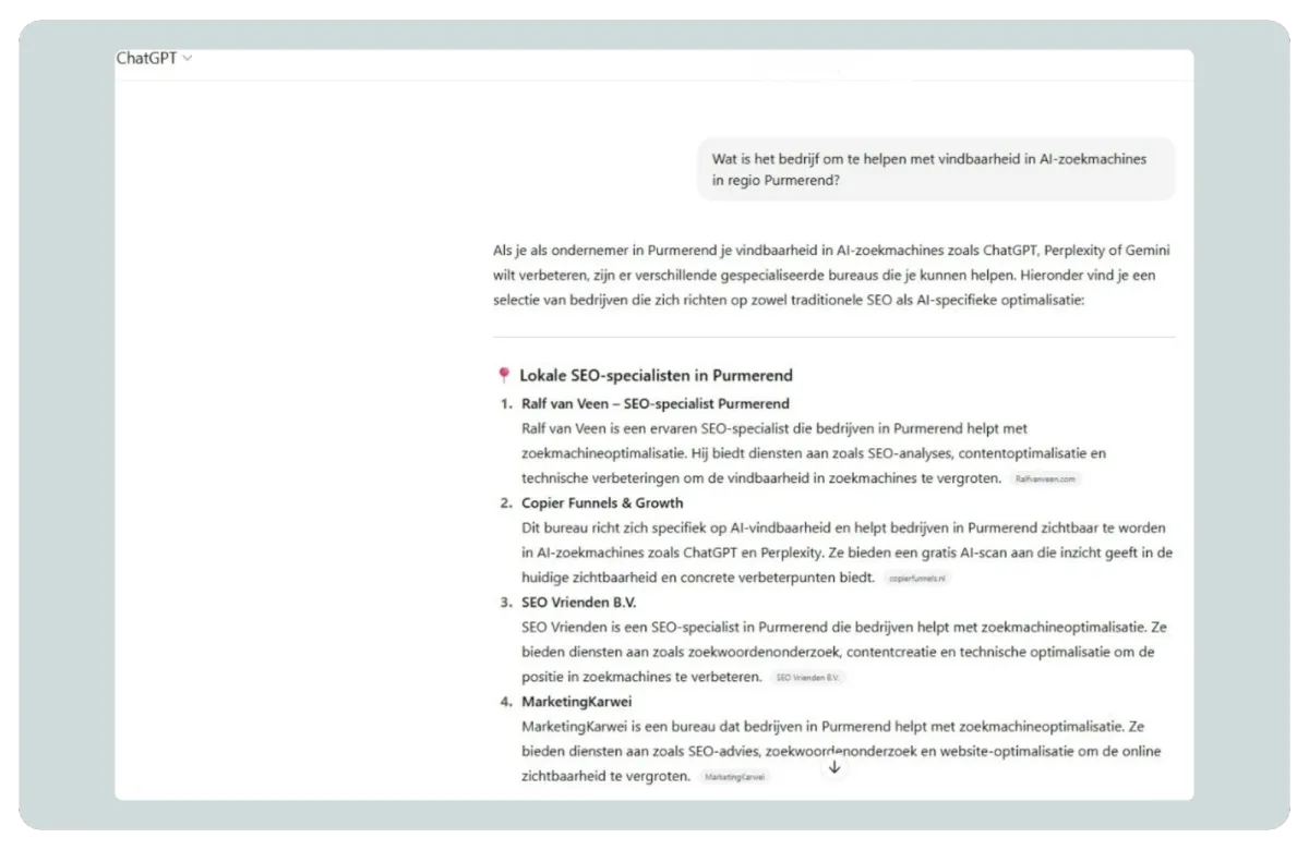Laat ons gratis uw bedrijf testen in 3 AI zoekmachines.